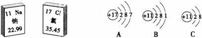 以下是鈉元素、氯元素在元素周期表中的信息圖和3種粒子的結(jié)構(gòu)示意圖。