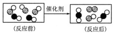 右圖是汽車尾氣中有毒氣體轉(zhuǎn)變?yōu)闊o毒氣體的微觀示意圖。圖中不同的圓球代表不同原子。下列說法錯(cuò)誤的是