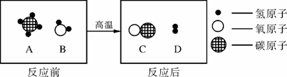 在高溫條件下,A、B兩種物質(zhì)可以發(fā)生化學(xué)反應(yīng)生成C和D。反應(yīng)前后分子種類變化的微觀示意圖如下圖所示。