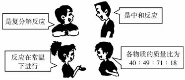 下圖是四位同學(xué)對某一個(gè)化學(xué)方程式意義的描述,他們描述的化學(xué)方程式是( )。