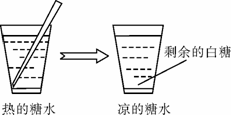 周末,感到有點餓的甲同學(xué)泡了一杯白糖開水,他用筷子充分?jǐn)嚢璞械陌滋呛,將杯子放在一邊待糖水變涼,喝糖水時,發(fā)現(xiàn)杯底有少量未溶解的白糖(如下圖所示)。下列操作或現(xiàn)象能說明糖水一定屬于飽和溶液的是( )。