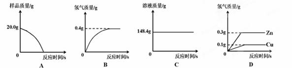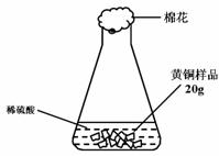 研究性學(xué)習(xí)小組為了測定黃銅(銅、鋅合金)的組成,用電子天平分別稱得錐形瓶與棉花的質(zhì)量為44.1g,稱取黃銅樣品20.0g。在錐形瓶中加入該樣品和足量稀硫酸后瓶口塞上棉花,如圖1所示。將電子天平稱量的數(shù)據(jù)繪成下圖2。
