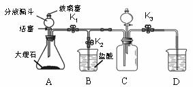 向裝置A中加入足量的稀鹽酸,寫出A中發(fā)生反應(yīng)的化學(xué)方程式________________;當(dāng)看到D中有大量渾濁產(chǎn)生時(shí),CO2已集滿,寫出D中發(fā)生反應(yīng)的化學(xué)方程式________________。