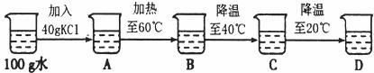 圖中燒杯A、B、C、D中的溶液屬于飽和溶液的是 ;