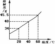 | 溫度/℃ | 0 | 20 | 40 | 60 | 80 | 100 | |