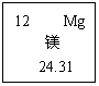 A.該元素的相對(duì)原子質(zhì)量為24.31 B.該元素的原子序數(shù)為12