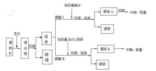 黃鐵礦的主要成分是FeS2。測定黃鐵礦中FeS2含量的兩種方法如下圖所示: