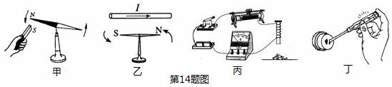 C.丙圖中的實驗可得出電流越大,電磁鐵的磁性越弱