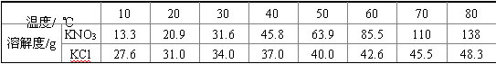 (2)由表中數(shù)據(jù)分析可知,KNO3和KCl在某一溫度時具有相