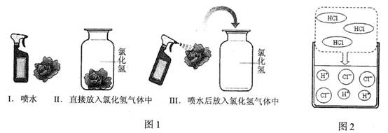 【進(jìn)行實(shí)驗(yàn)】該興趣小組的同學(xué)根據(jù)二氧化碳與水反應(yīng)的實(shí)驗(yàn)探究方法,用三朵由紫甘藍(lán)的汁液染成藍(lán)紫色的紙質(zhì)干燥小花進(jìn)行如圖1的三個(gè)實(shí)驗(yàn):
