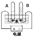 (4)按右圖所示裝置進(jìn)行實(shí)驗(yàn),一段時(shí)間后,理論上A試管中產(chǎn)生的氣體與B試管中產(chǎn)生的氣體的體積比為 ,該實(shí)驗(yàn)過(guò)程中發(fā)生反應(yīng)的化學(xué)方程式為