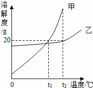 (3)t2℃時(shí),將甲、乙各20g分別加入到兩只盛有100g水的燒杯中,充分?jǐn)嚢,所得乙溶液?u> 溶液(填“飽和”或“不飽和”);若將溫度都降低到t1℃,甲溶液中溶質(zhì)的質(zhì)量分?jǐn)?shù) (填“>”、“<”或“=”)乙溶液中溶質(zhì)的質(zhì)量分?jǐn)?shù).