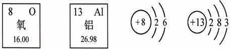 下圖是氧元素、鋁元素在元素周期表中的信息和氧原子、鋁原子的結(jié)構(gòu)示意圖。根