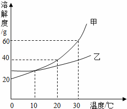 | B. | 乙的溶解度受溫度影響比甲大 |