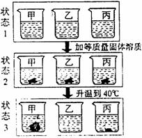 狀態(tài)下,各燒杯(甲、乙、丙)里的溶液中溶質(zhì)質(zhì)量分?jǐn)?shù)的比較一定正確的是__________。