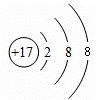 B.氯原子核內(nèi)有17個(gè)質(zhì)子