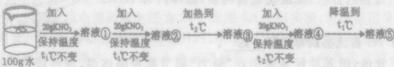通過如圖所示的實驗(不考慮水分蒸發(fā)),得到相應的五種溶液。下列敘述不正確的是( )
