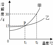 別將甲、乙兩種物質(zhì)的飽和溶液降溫到t1℃,甲