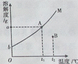 (1)B點(diǎn)所表示的溶液為M在t2℃的 (選填“飽和”或“不