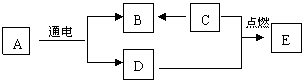A、B、C、D、E五種物質(zhì)之間的變化關系如右圖所示。其中B、C、D為單質(zhì),C為鋼鐵的主要成分。試回答: