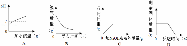 | B. | 向鋅粒中逐漸加入稀硫酸 |