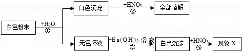 (2)若現(xiàn)象X為“沉淀不溶解”或“沉淀部分溶解”,結(jié)論是固體粉末中 ;若現(xiàn)象X為“沉淀全部溶解”,結(jié)論是固體粉末中 .