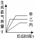 | A. | 生成氫氣的質(zhì)量:甲>乙>丙 | B. | 相對原子質(zhì)量:乙>丙>甲 |