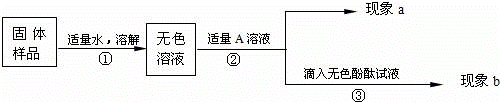 (2)若A是Ca(OH)2溶液,現象a有白色沉淀,現象b為無色酚酞試液變紅色,則白色沉淀為 (填化學式),該實驗 (填“能”或“不能”)說明樣品中有NaOH.