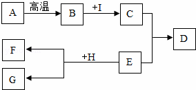 如圖所示,A﹣﹣I為初中化學(xué)中常見的物質(zhì).已知A為石灰石,D為藍(lán)色沉淀,C和E為只含一種物質(zhì)的溶液,I為生命之源.“→”表示物質(zhì)間存在著相互轉(zhuǎn)化的關(guān)系(部分生成物未標(biāo)出).回答下列問題: