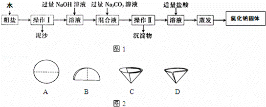 (1)操作Ⅰ和操作Ⅱ的名稱是 .該操作中需要將圓形濾紙折疊處理,下列圖2所示中不該出現(xiàn)的情形是 (填序號(hào)).