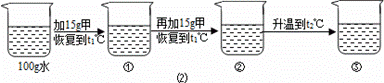 (3)在溶液③中再加入25g甲后,充分?jǐn)嚢瑁謴?fù)到t2℃時,所得溶液中溶質(zhì)的質(zhì)量分?jǐn)?shù)