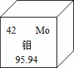 | A. | 原子核內(nèi)質(zhì)子數(shù)為42 | B. | 相對原子質(zhì)量為95.94g |