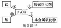 歸納總結(jié)是學習化學的重要方法,小明同學用圖甲總結(jié)了NaOH的四條化學性質(zhì)(即NaOH與四類物質(zhì)能夠發(fā)生化學變化)。