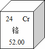| C. | 該元素在地殼中的含量為52.00% | D. | 該元素屬于非金屬元素 |