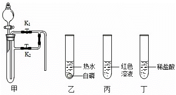(2)若甲中為水,丙中為紅色溶液,連接甲丙,打開(kāi)K1,關(guān)閉K2,從分液漏斗向甲中加入某藥品后,丙中只看到溶液由紅色變?yōu)闊o(wú)色.寫出丙中發(fā)生反應(yīng)的化學(xué)方程式 .