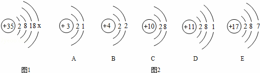 (1)在圖中x= ,Br屬于 元素(填“金屬”或“非金屬”).