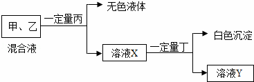 甲、乙、丙、丁4種無(wú)色溶液,分別是酚酞溶液、稀鹽酸、氫氧化鈣溶液、氫氧化鈉溶液、碳酸鈉溶液、氯化鈉溶液6種溶液中的一種.已知:甲、乙混合無(wú)明顯現(xiàn)象,溶液X、Y中只含同一種金屬元素,碳酸鈉溶液呈堿性.根據(jù)下圖回答問(wèn)題.