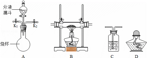 II.按A→C→B→C→D的順序連接裝置,打開(kāi)K1,從K1處通入氮?dú),打開(kāi)K2,排盡B中空氣,加熱B中足量的氧化銅固體,充分反應(yīng);
