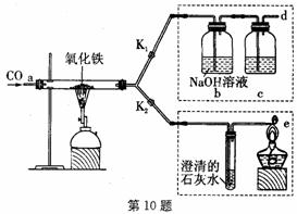 2011年是國際化學(xué)年(IYC2011),其宗旨是“增進(jìn)公眾對(duì)化學(xué)重要性的認(rèn)識(shí),鼓勵(lì)青年人熱愛化學(xué),學(xué)習(xí)和研究化學(xué)”。某;瘜W(xué)興趣小組的同學(xué),對(duì)課本中一氧化碳還原氧化鐵的實(shí)驗(yàn)做了綠色化改進(jìn)后制取單質(zhì)鐵(K1、K2是活塞):