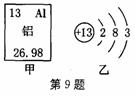 下圖甲是某元素在元素周期表中的相關(guān)信息,乙是其原子結(jié)構(gòu)示意圖,有關(guān)該元素及其原子結(jié)構(gòu)的下列說法中,錯誤的是 ( )