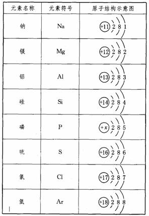 下表為元素周期表中某一周期元素的原子結(jié)構(gòu)示意圖。