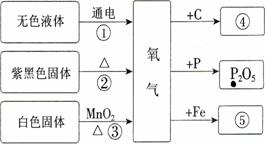 右圖是有關氧氣的知識結構圖(部分反應條件省略。參加反應的氧氣為足量)。請回答下列問題: