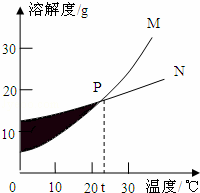 | B. | P點(diǎn)表示t℃時(shí)M、N的溶解度相等 |