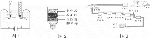 (2)圖2是簡(jiǎn)易凈水裝置.該凈水裝置中小卵石、石英砂的作用是 (填“過濾”或“消毒”),該裝置 (填“能”或“不能”)將硬水軟化.用(物質(zhì))鑒別家庭用水是否是硬水,硬水給人們的生活帶來了許多麻煩,生活中可通過 的方法使硬水軟化.