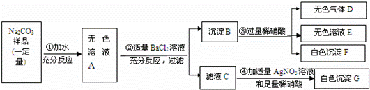 現(xiàn)有某不純的碳酸鈉固體樣品,已知其中含有的雜質(zhì)可能是Na2SO4、CuSO4、NaCl、CaCl2中的一種或幾種.為確定其雜質(zhì)的成分,進(jìn)行如下實(shí)驗(yàn),出現(xiàn)的現(xiàn)象如圖所示(設(shè)過(guò)程中所有發(fā)生的反應(yīng)都恰好完全進(jìn)行).