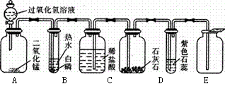 某同學(xué)模仿物理課上學(xué)到的“串聯(lián)電路”,設(shè)計了如下氣體制取與性質(zhì)驗證的組合實驗。打開分液漏斗活塞后,A中出現(xiàn)大量氣泡,B中白磷燃燒,C中液面下降,稀鹽酸逐漸進入D中。請看圖回答問題: