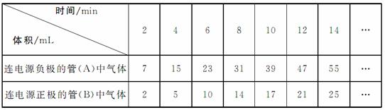某研究性學(xué)習(xí)小組的同學(xué)對電解水的實(shí)驗(yàn)很感興趣,很想通過實(shí)驗(yàn)驗(yàn)證這一結(jié)論。于是在征得老師的同意后進(jìn)行實(shí)驗(yàn),實(shí)驗(yàn)記錄如下: