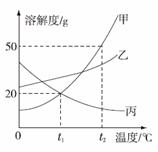右圖是甲、乙、丙三種物質(zhì)的溶解度曲線。下列說法錯(cuò)誤的是( )