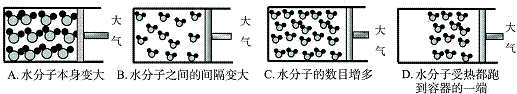 若將容器中的水煮沸后,液態(tài)水變成水蒸氣,