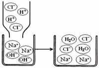 【拓展遷移】若該溶液與鹽酸發(fā)生中和反應(yīng) ,恰好完全反應(yīng)的微觀過(guò)程如右圖所示,反應(yīng)的實(shí)質(zhì)為酸溶液中的H+ 和堿溶液中的OH- 相互結(jié)合生成了H2O,則反應(yīng)后溶液中存在的陰、陽(yáng)離子是___ _(填符號(hào))。